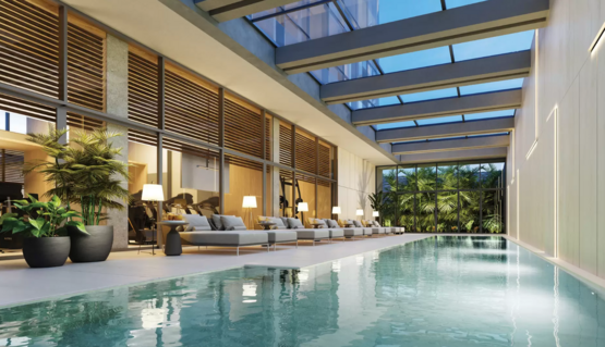 O empreendimento conta com áreas comuns completas, incluindo lobby com pé-direito de sete metros, piscina climatizada com raia de 20 metros, SPA com sauna úmida, área de descanso e sala de massagem, além de fitness, salão de festas e brinquedoteca. O edifício possui ainda sete vagas para visitantes e entradas independentes para veículos e pedestres, proporcionando segurança e privacidade.